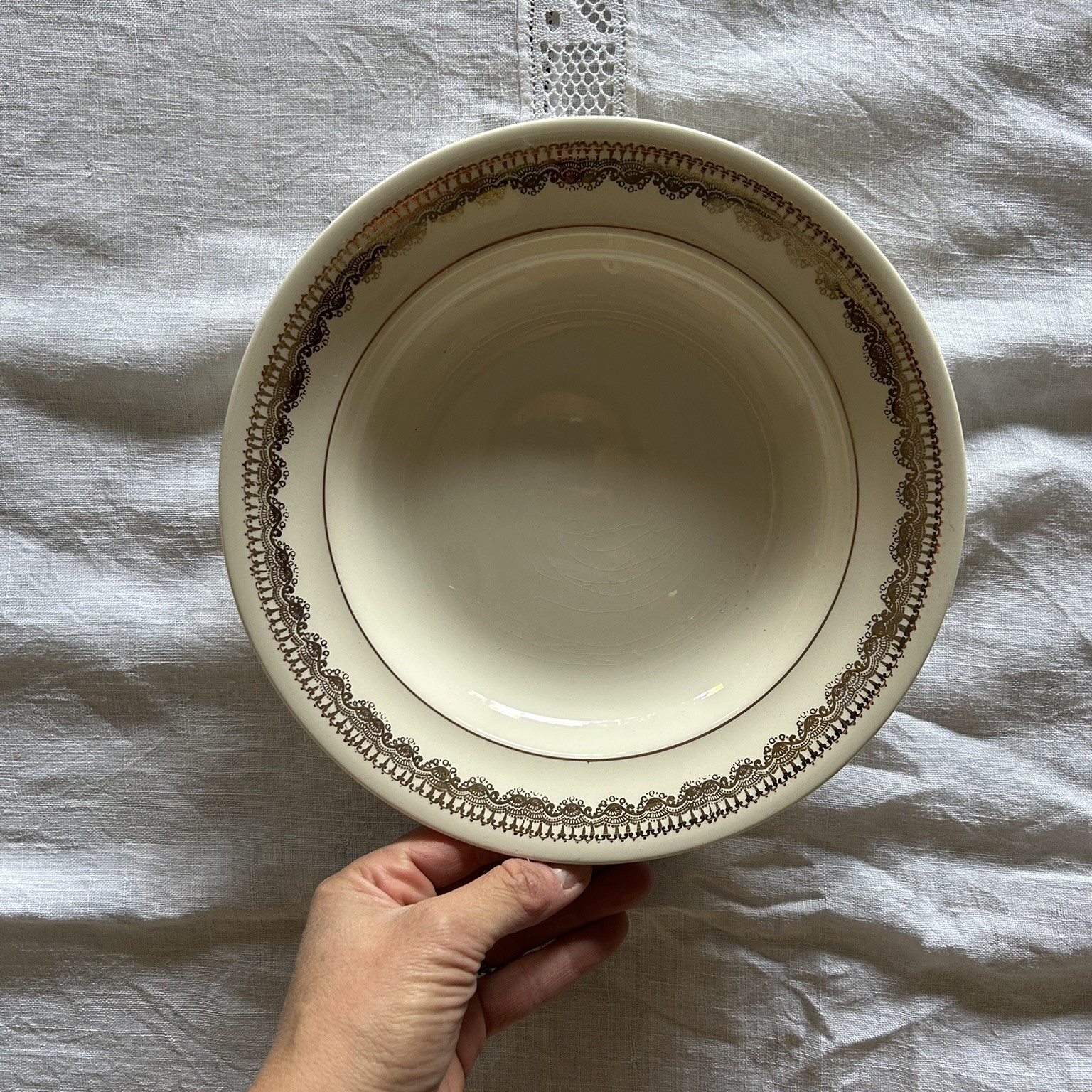 Todas nuestras piezas provienen de Francia y han sido encontradas cuidadosamente tras varios kilómetros y viajes atravesando el país Galo en busca de la perla rara. Nuestras vajillas tienen marcas de su paso del tiempo, Todas ellas son supervivientes por ser de otra época y por haber surcado mares, manos, mesas y casas. Desde aquí, se las admira por su belleza y su singularidad; su robustez pero también su feminidad y sobre todo por sus colores y formas y su pátina. Espero que una vez en vuestras manos y vuestros hogares encuentren la paz y la calma para seguir viviendo y recopilando experiencias.
